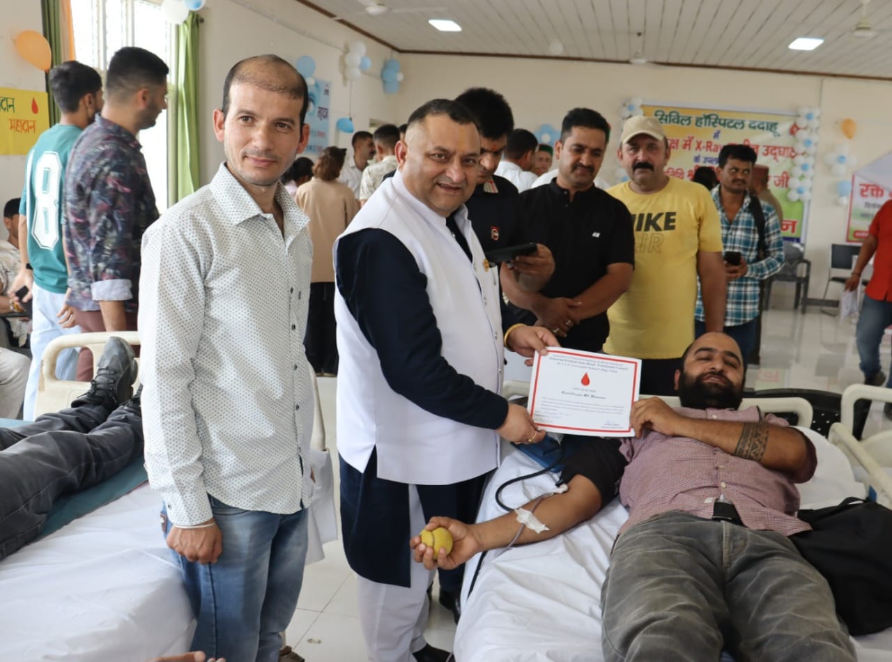 इससे पूर्व हिमाचल प्रदेश विधानसभा उपाध्यक्ष विनय कुमार ने सिविल अस्पताल ददाहु में स्वर्गीय डॉ. प्रेम सिंह की याद में आयोजित रक्त दान शिविर का शुभारंभ किया तथा इस अवसर पर उन्होंने कहा कि रक्तदान महादान है और सभी को निःसंकोच रक्तदान के लिए आगे आना चाहिए।